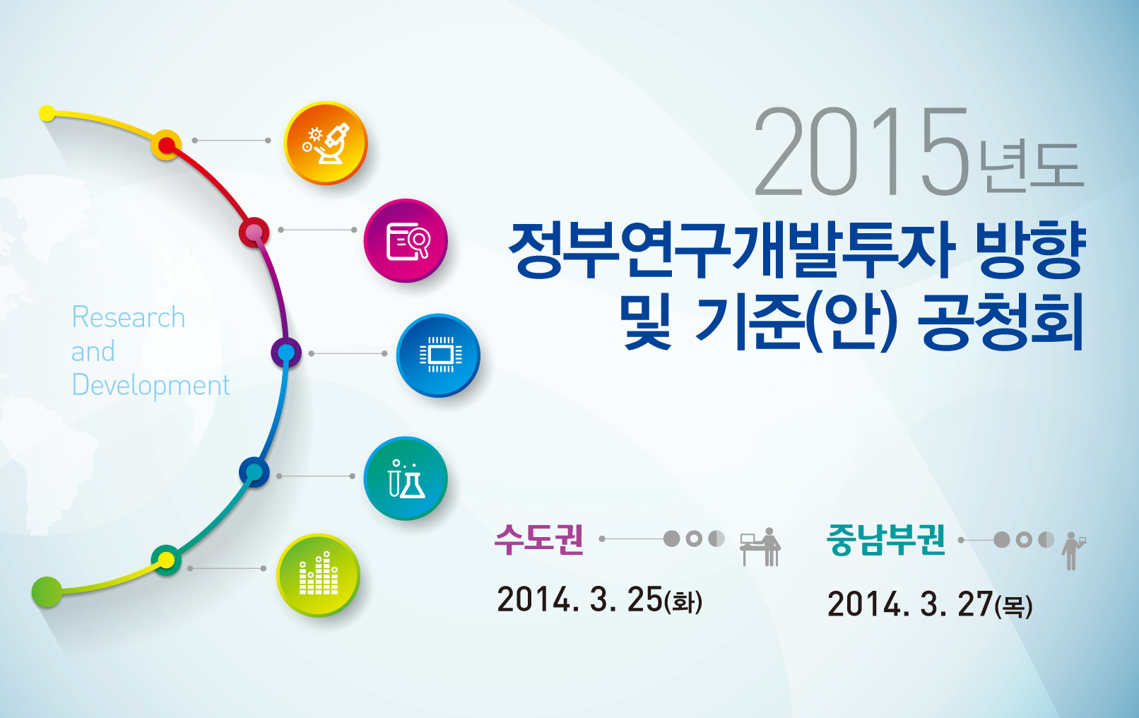 | 1200 | 홍보 | [초청] 2015년도 정부연구개발투자 방향 및 기준(안) 공청회 | 안소희 | 2014-03-14 | ![]() |
